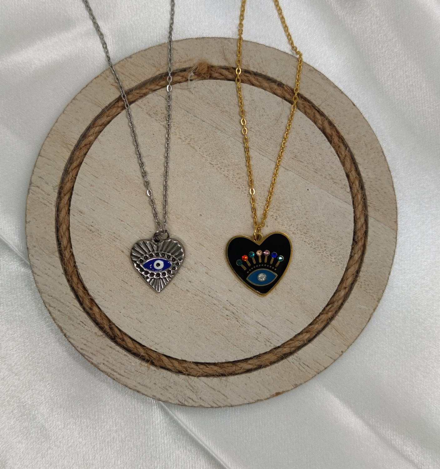 Ατσάλινο κολιέ καρδιά με μάτι