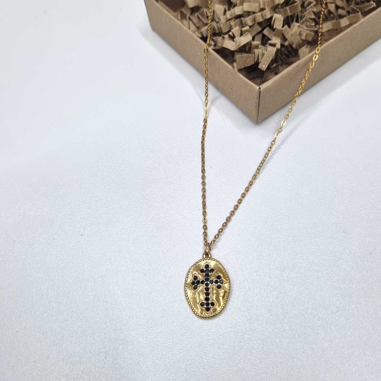 Ατσάλινο κολιέ με οβάλ στοιχείο με ημιπολύτιμο λίθο