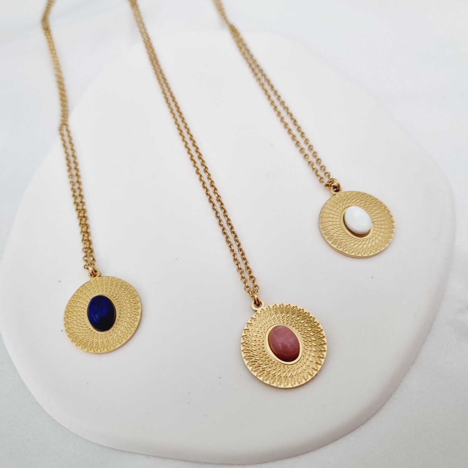 Ατσάλινο κολιέ με στρόγγυλο στοιχείο με ημιπολύτιμο λίθο