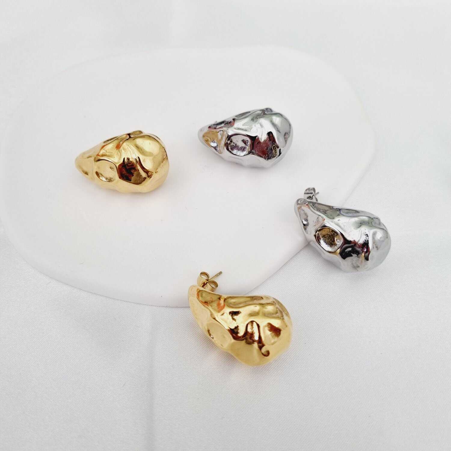 Ατσάλινα σκουλαρίκια τσαλακωμένες σταγόνες