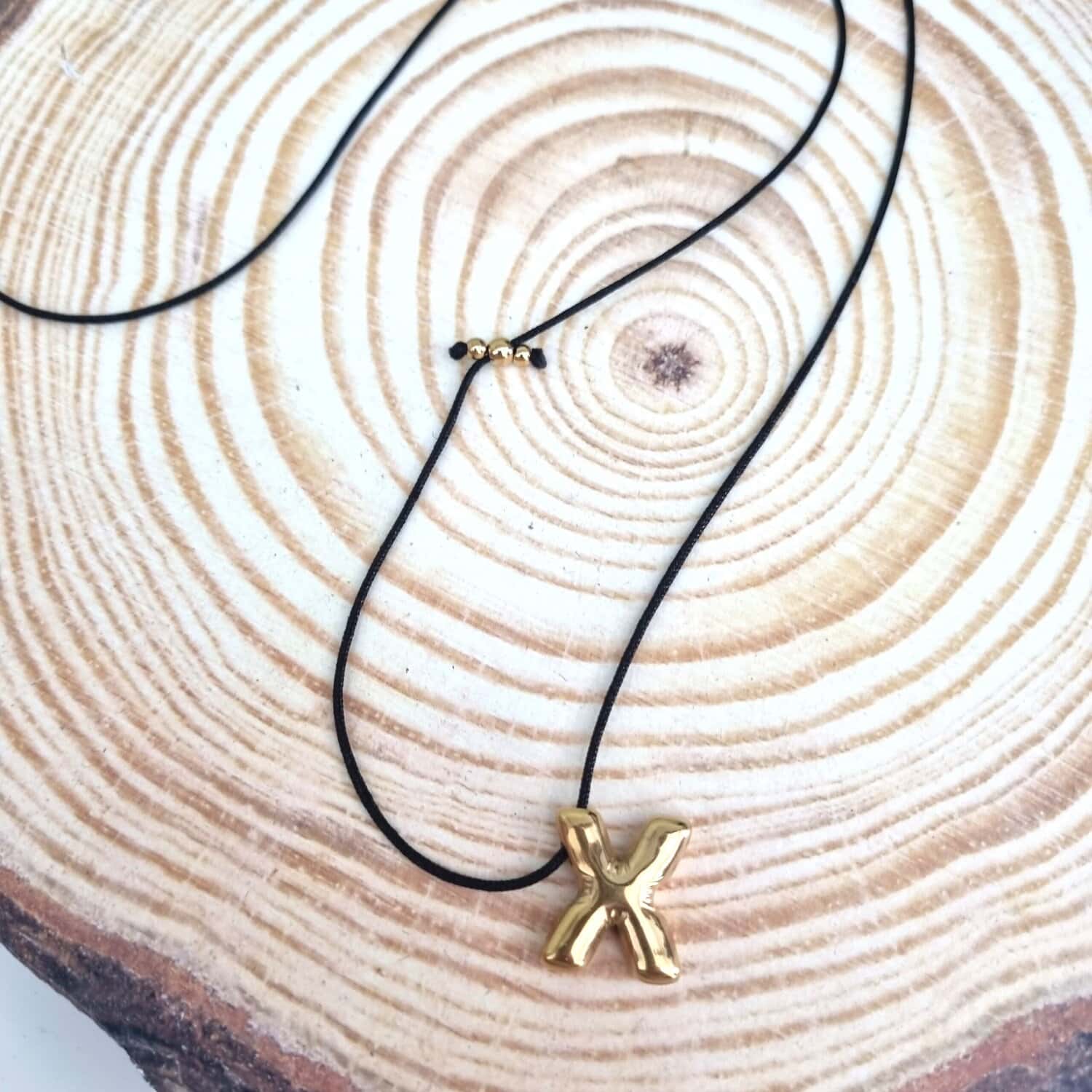 Μακρύ κολιέ με ατσάλινο μονόγραμμα Χ