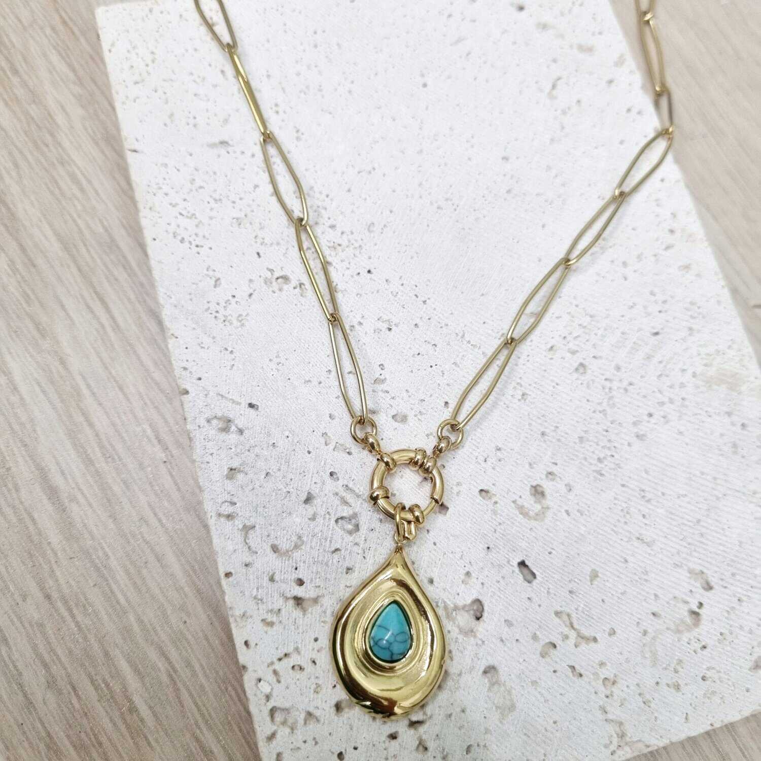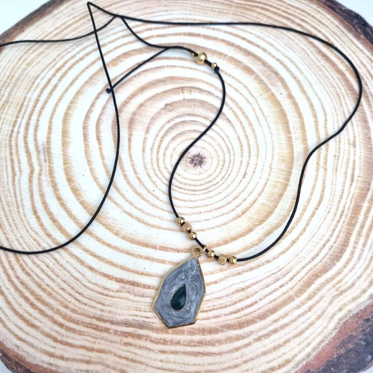 Μακρύ κολιέ με ατσάλινο στοιχείο