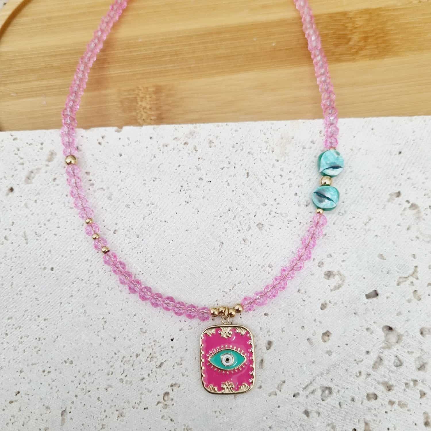 Κολιέ με κρυσταλλάκια και ατσάλινο στοιχείο με μάτι