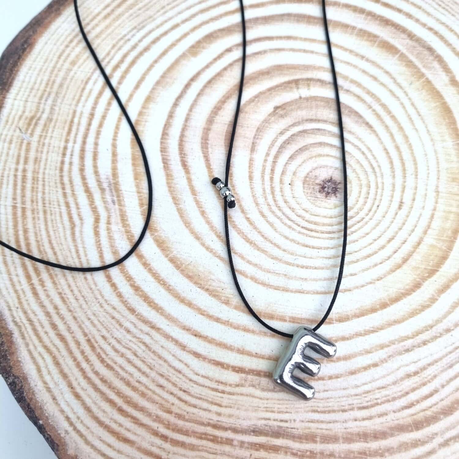 Μακρύ κολιέ με ατσάλινο μονόγραμμα Ε