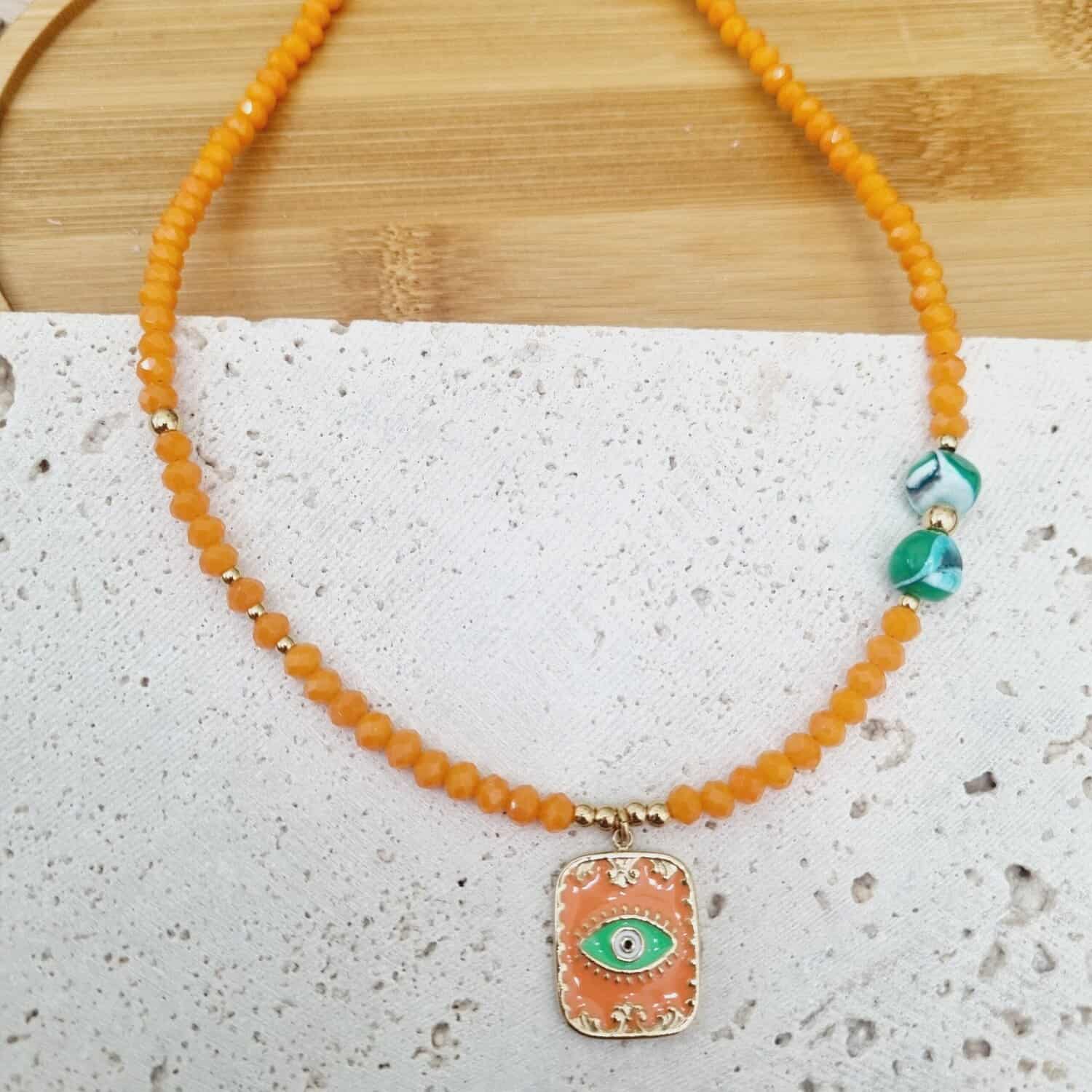 Κολιέ με κρυσταλλάκια και ατσάλινο στοιχείο με μάτι