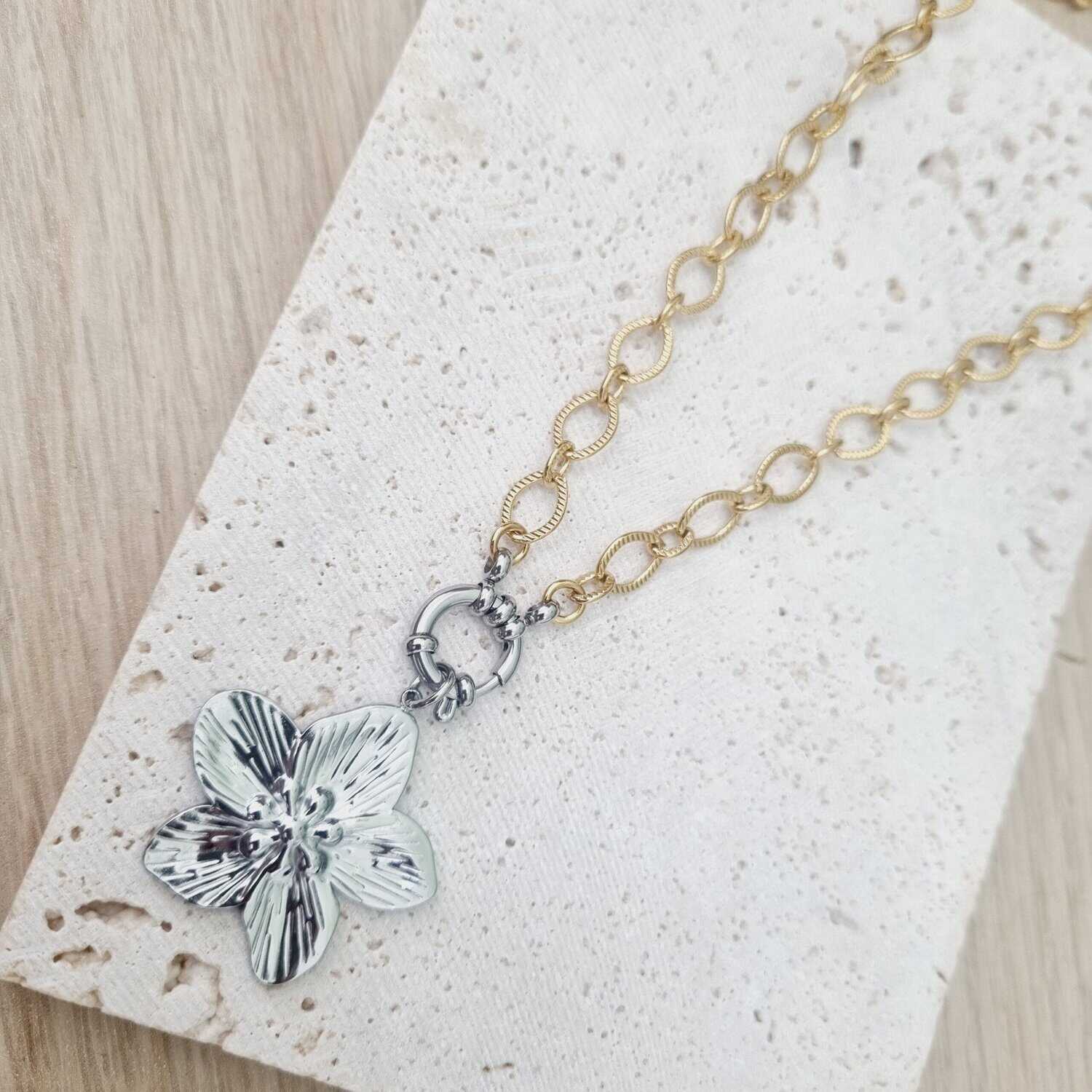 Ατσάλινο κολιέ με μικρό φλουράκι