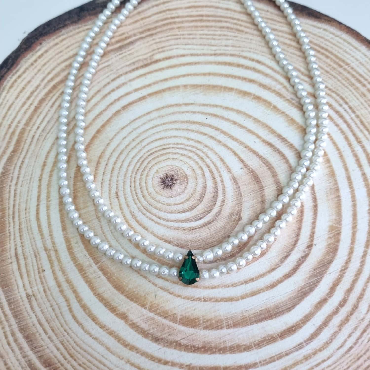 Κολιέ με πέρλες και στρας