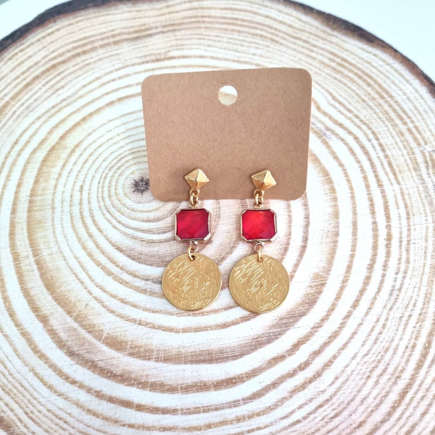 Κρεμαστά σκουλαρίκια με τετράγωνα κρύσταλλα και φλουριά