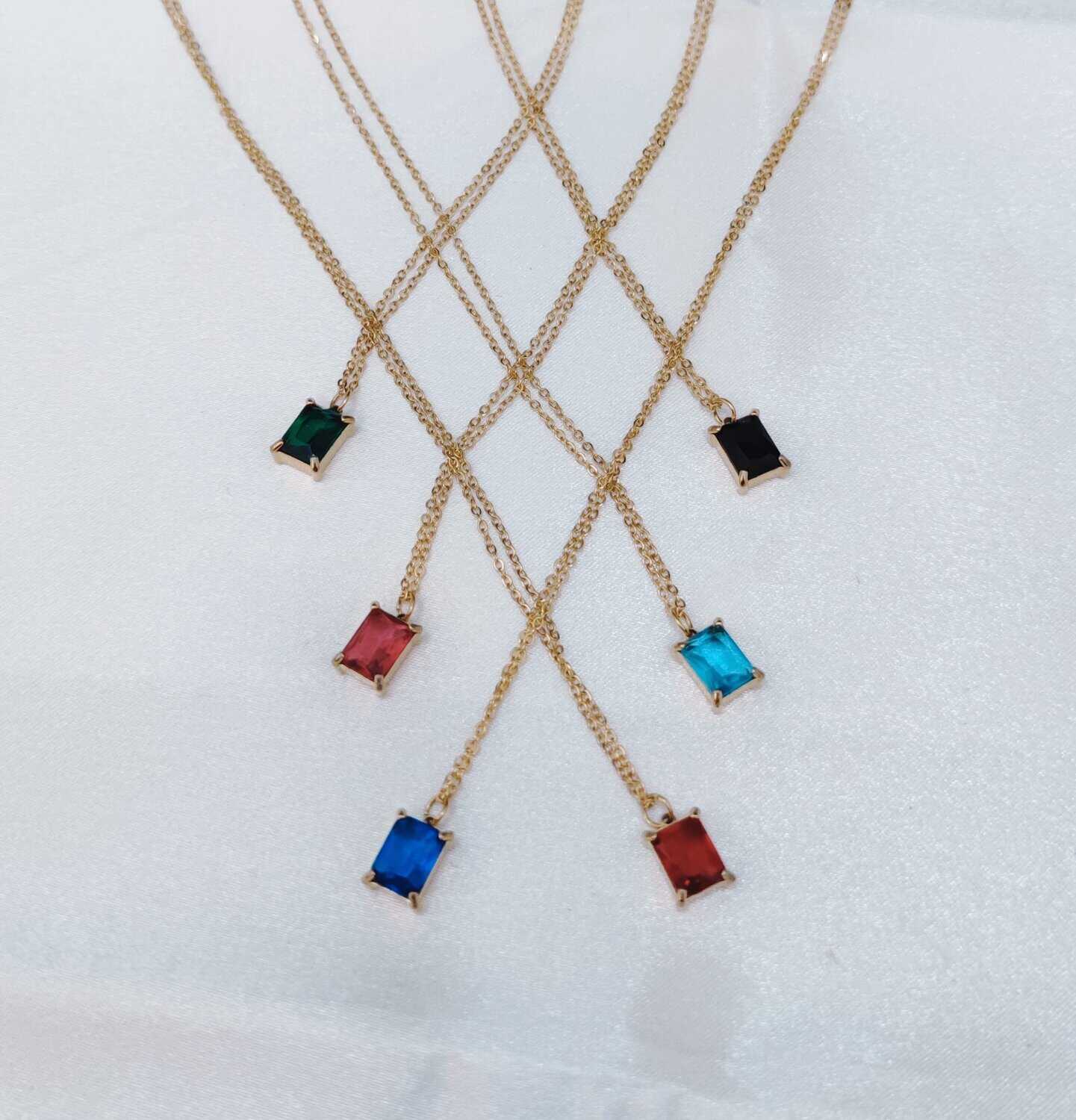 Ατσάλινο κολιέ με τετράγωνο κρύσταλλο