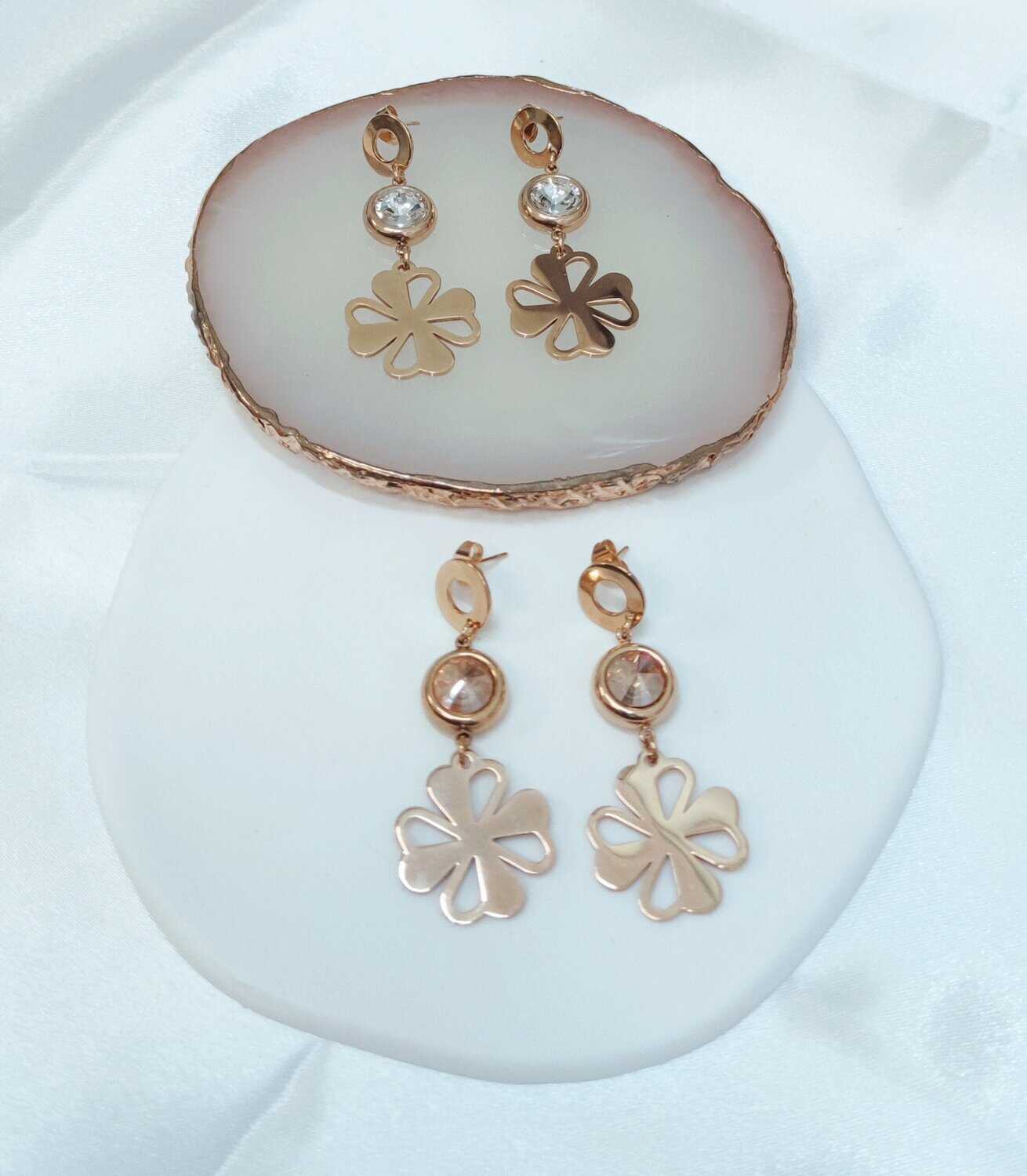 Ατσάλινα σκουλαρίκια τριφύλλια με στρας