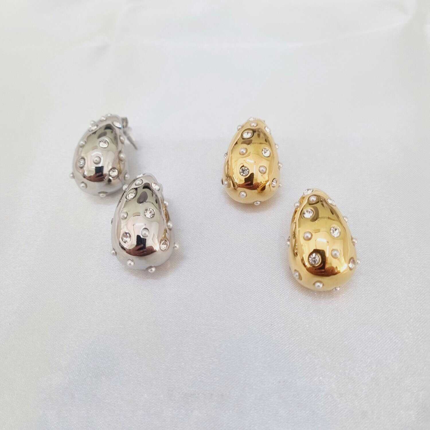 Ατσάλινα σκουλαρίκια σταγόνες με διάφανα στρας και πέρλες
