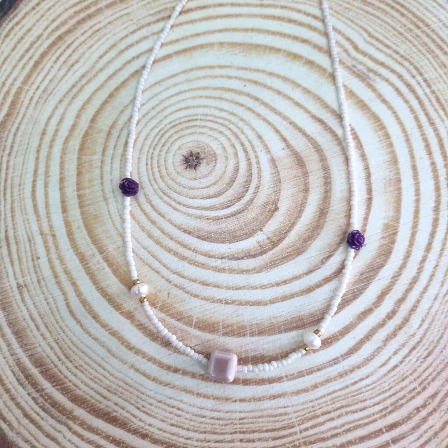 Κολιέ με κρεμ χάντρες και μαργαριτάρια