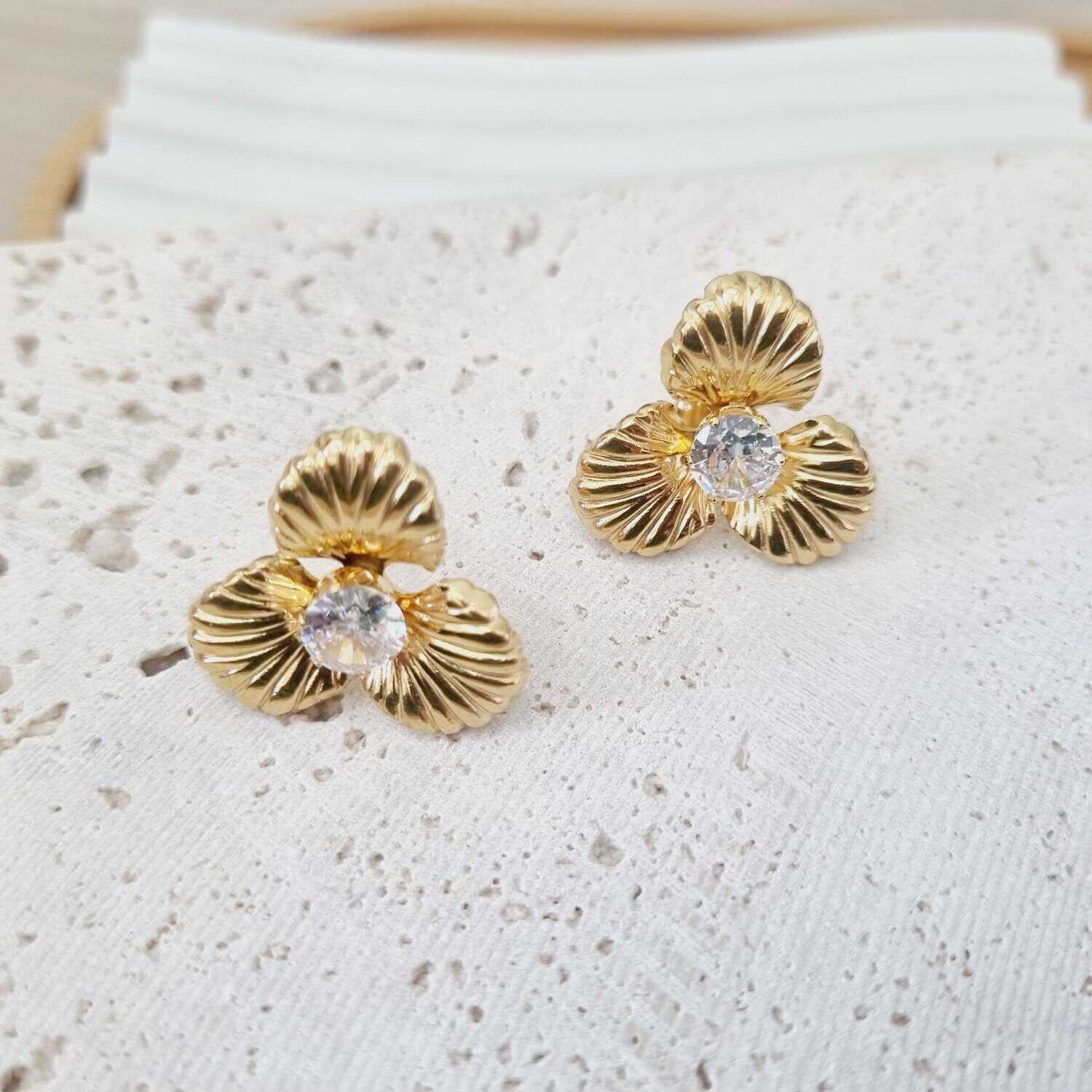Κρεμαστά σκουλαρίκια με τετράγωνα κρύσταλλα και φλουριά