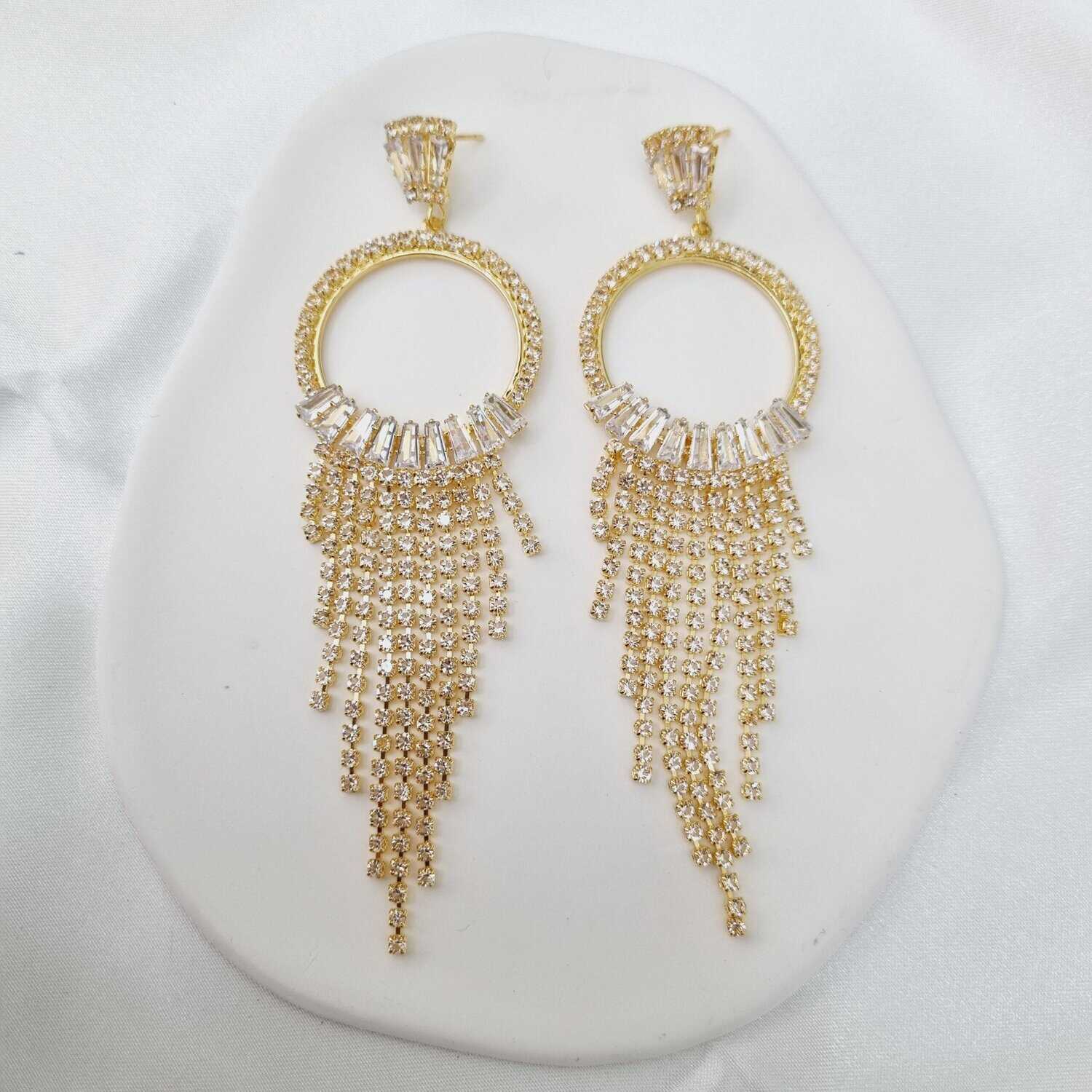Κρεμαστά σκουλαρίκια με διάφανα κρύσταλλα και στρας