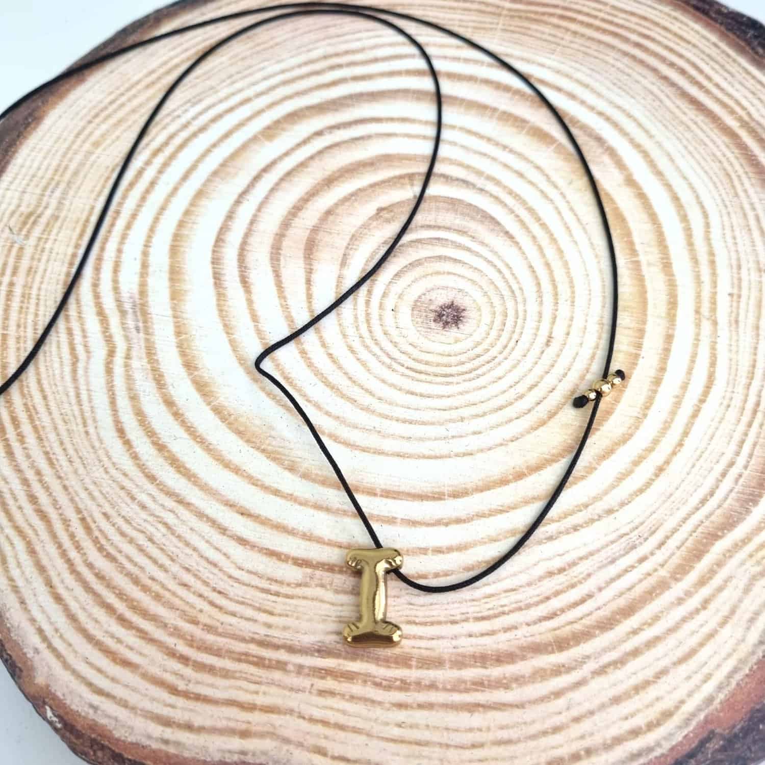 Μακρύ κολιέ με ατσάλινο μονόγραμμα Ι