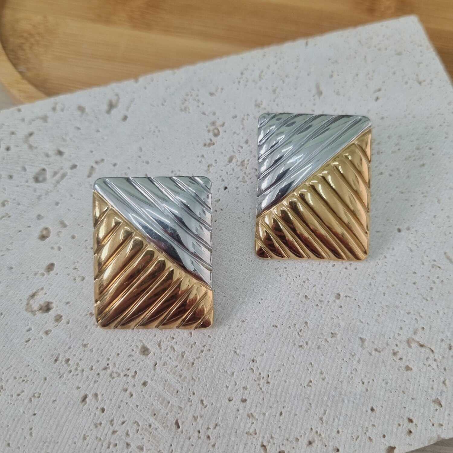 Κρεμαστά σκουλαρίκια με τετράγωνα κρύσταλλα και φλουριά