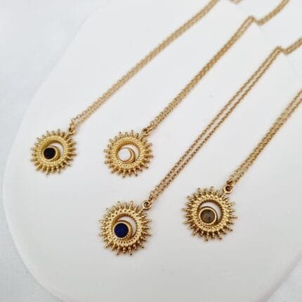 Ατσάλινο κολιέ ήλιος με ημιπολύτιμο λίθο