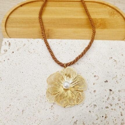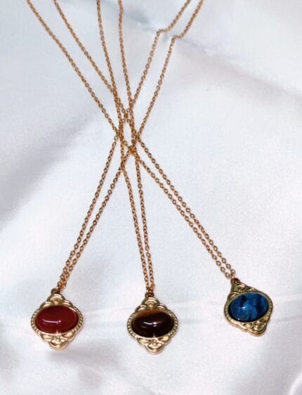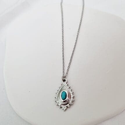Ατσάλινο κολιέ με έθνικ στοιχείο με ημιπολύτιμο λίθο