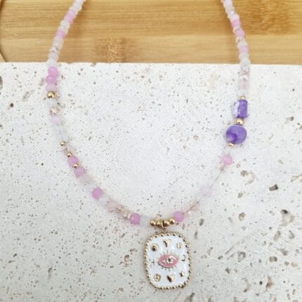 Κολιέ με κρυσταλλάκια και ατσάλινο στοιχείο με μάτι