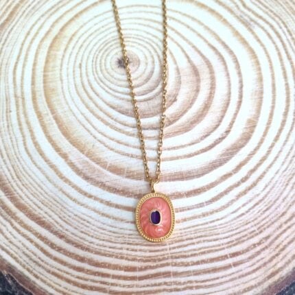 Κολιέ με ορθογώνιο στοιχείο με δίχρωμο σμάλτο
