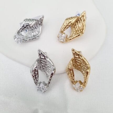 Ατσάλινα σκουλαρίκια βεντάλιες με διάφανο κρύσταλλο
