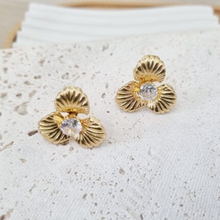 Ατσάλινα σκουλαρίκια λουλούδια με διάφανα κρύσταλλα