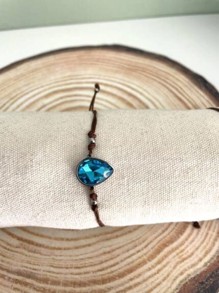 Ατσάλινο βραχιόλι δάκρυ με γαλάζιο κρύσταλλο