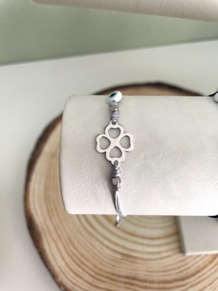 Ατσάλινο βραχιόλι με τριφύλλι και μάτι