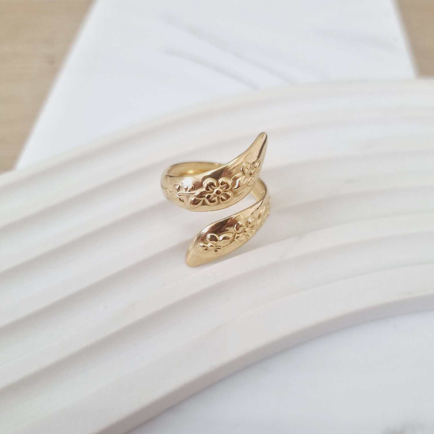 Ατσάλινο δαχτυλίδι με ανάγλυφα λουλούδια