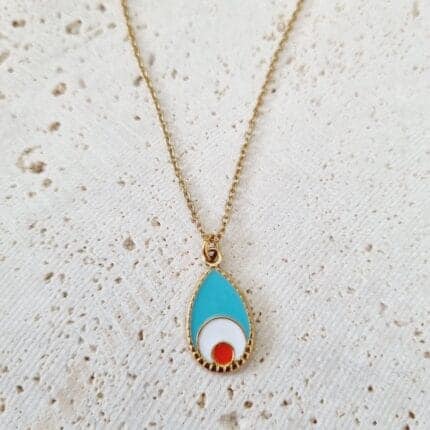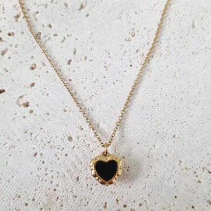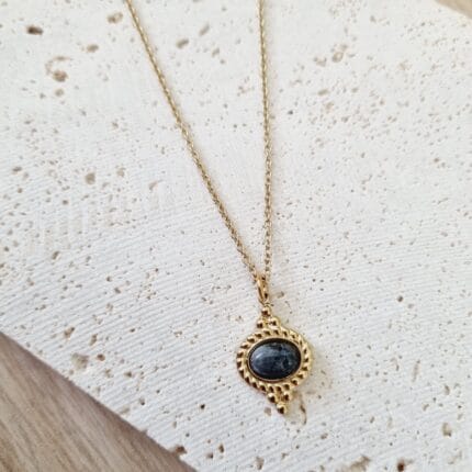 Ατσάλινο κολιέ με καδένα και στοιχείο με μαύρο σμάλτο