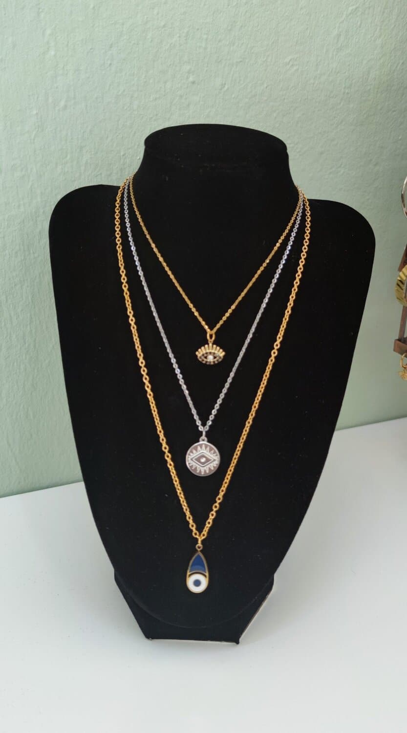 Το κολιέ με το μάτι με τα στρας έχει μήκος 40cm + 5cm αλυσίδα αυξομείωσης