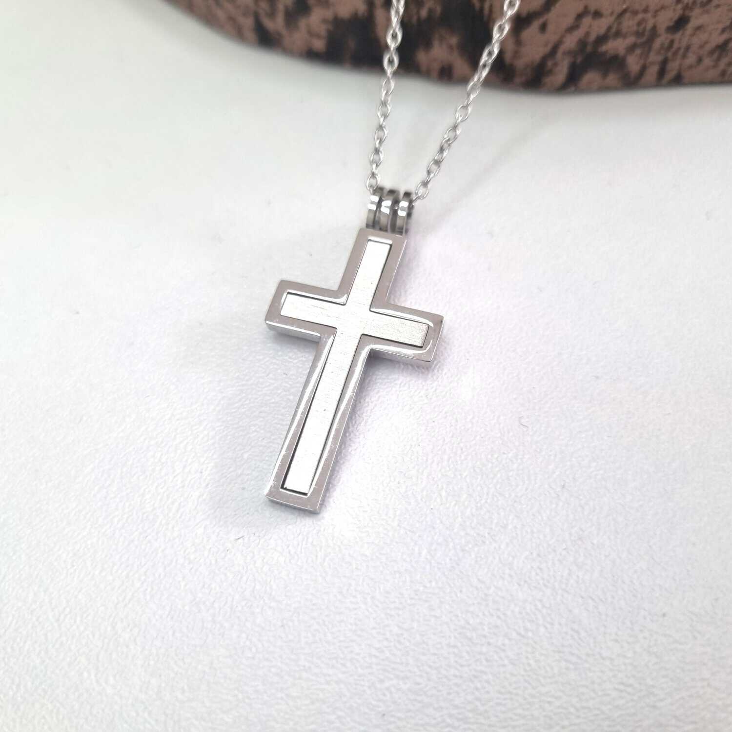 Ατσάλινο κολιέ με αλυσίδα μεγέθους 50cm + 5cm αλυσίδα αυξομείωσης με ατσάλινο ασημί σταυρό.