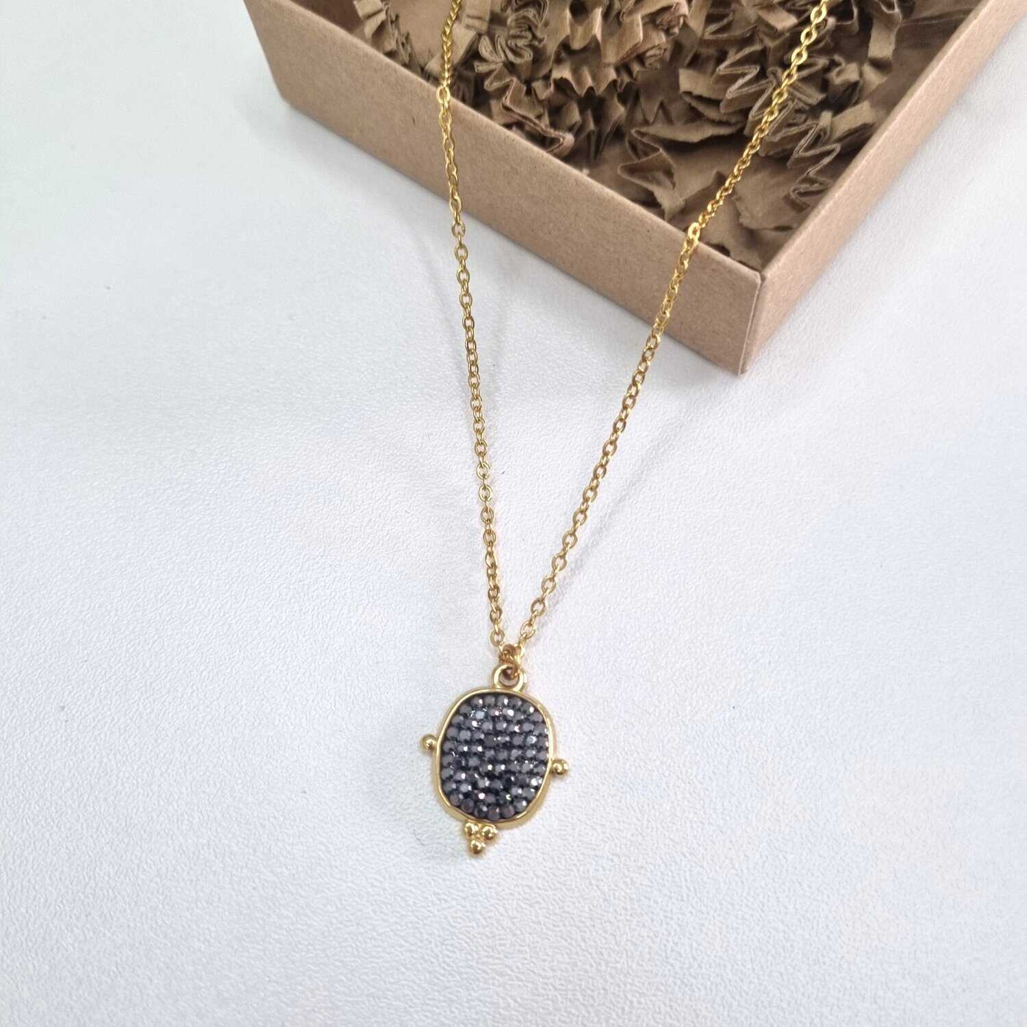 Ατσάλινο κολιέ με στοιχείο με στρας