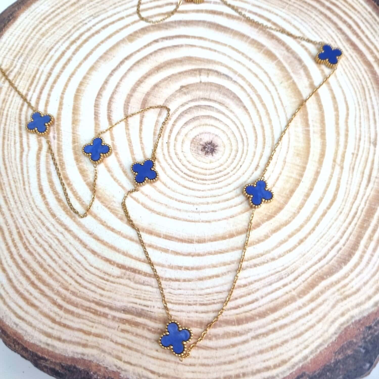 Ατσάλινο μακρύ κολιέ με σταυρούς με σμάλτο σε ροζ και μπλε απόχρωση. Το μέγεθος του κολιέ είναι σταθερό στα 80cm.