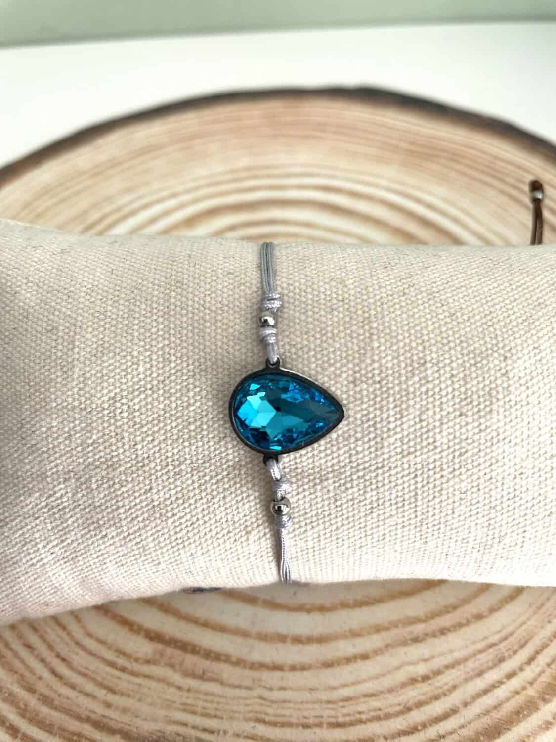 Ατσάλινο βραχιόλι δάκρυ με γαλάζιο κρύσταλλο