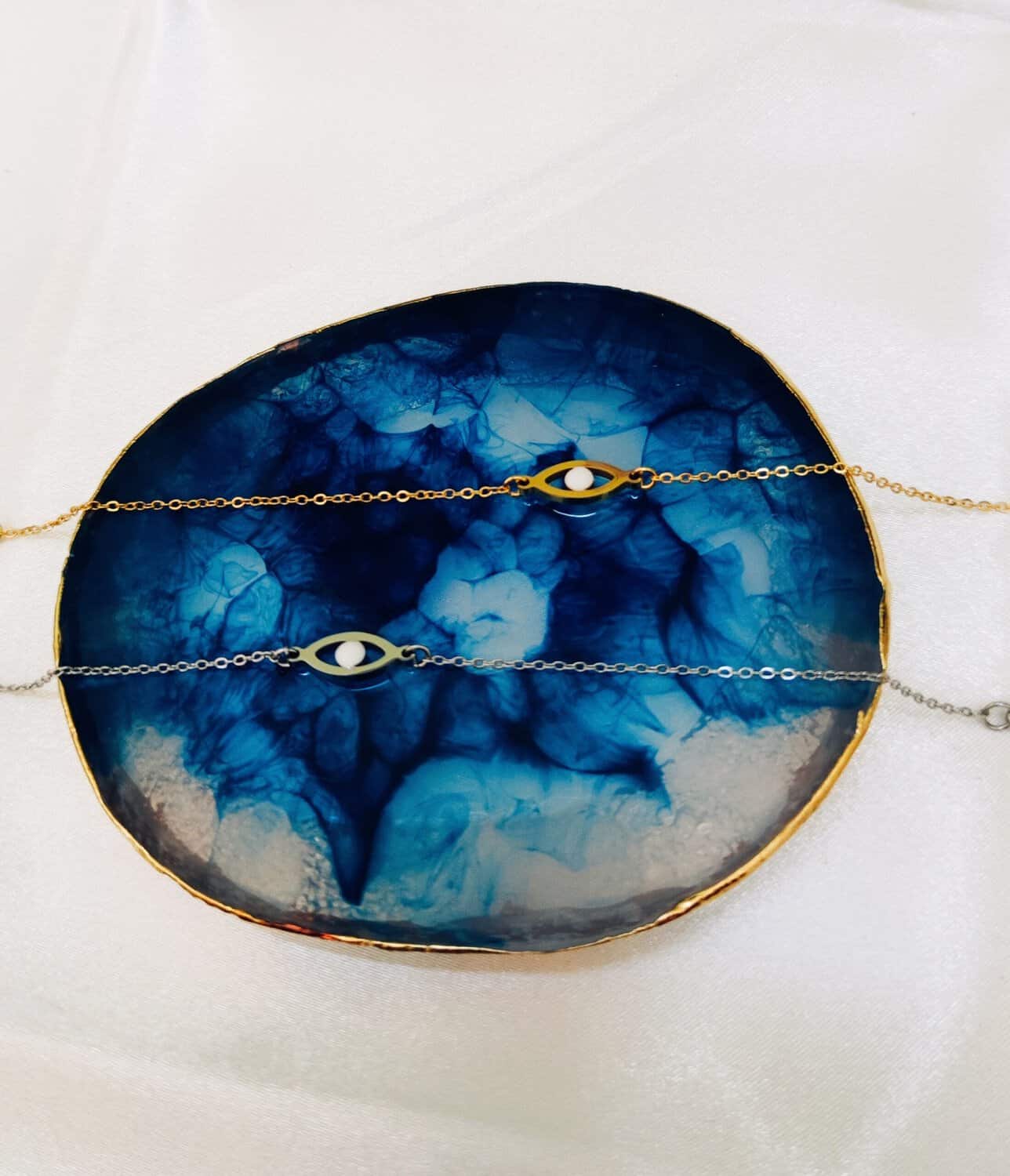 Ατσάλινο βραχιόλι με μάτι με άσπρο σμάλτο