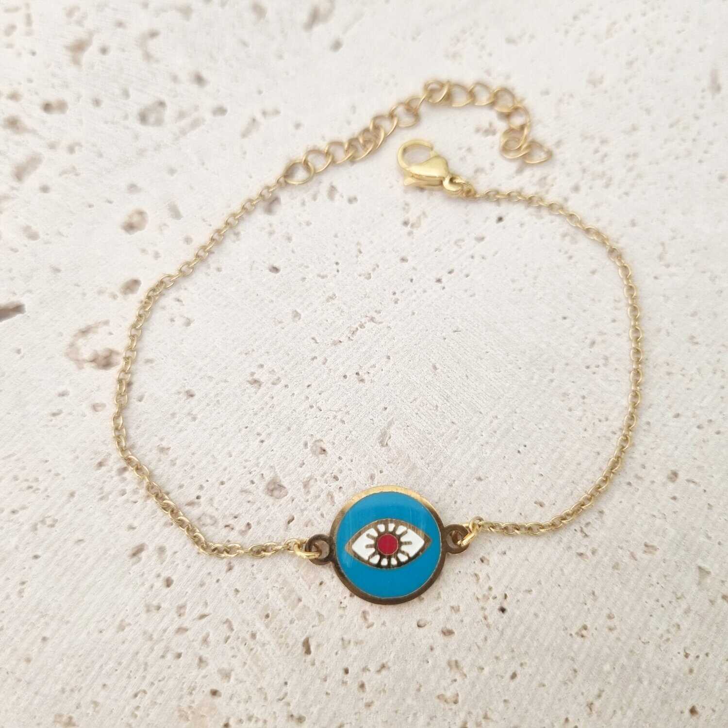 Ατσάλινο βραχιόλι στρόγγυλο μάτι με σμάλτο