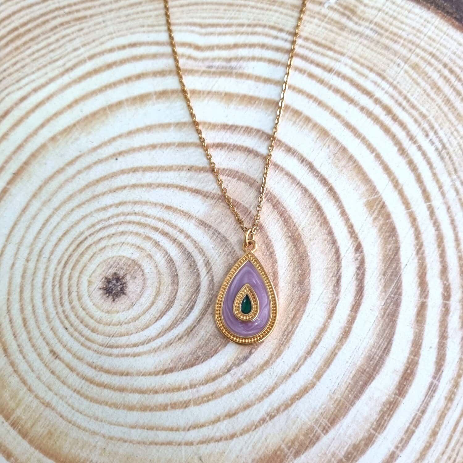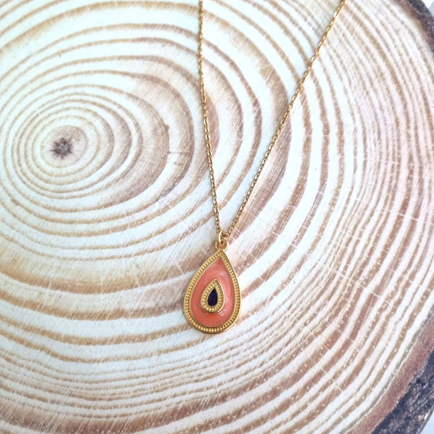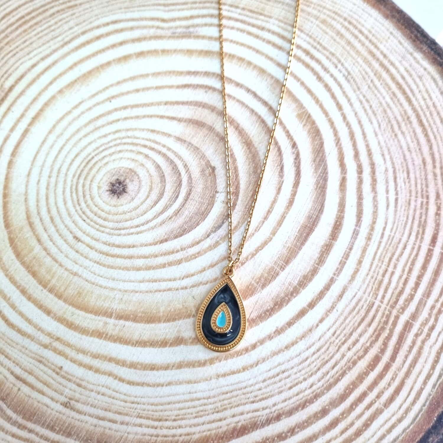 Κολιέ δάκρυ με δίχρωμο σμάλτο