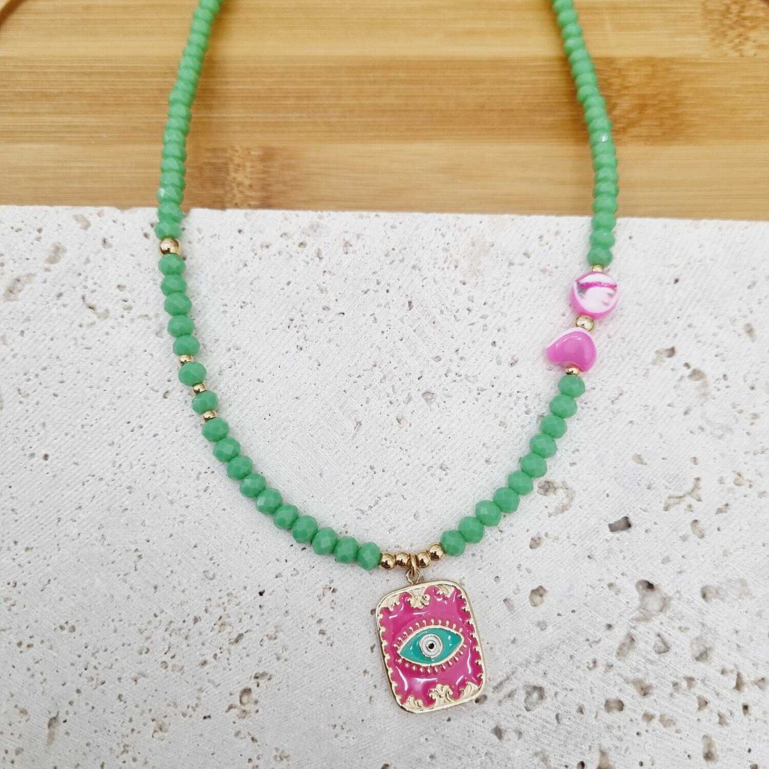 Κολιέ με κρυσταλλάκια και ατσάλινο στοιχείο με μάτι