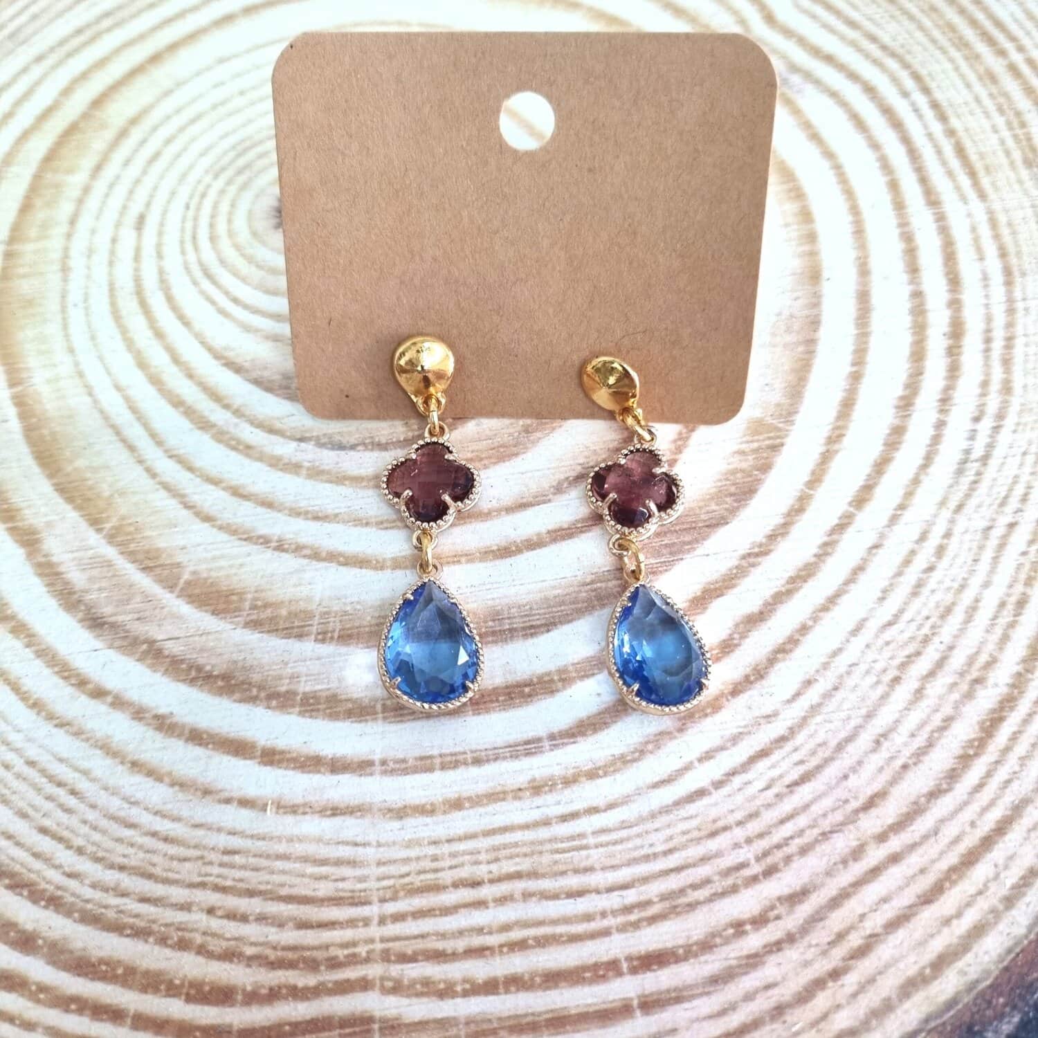 Κρεμαστά σκουλαρίκια από ορείχαλκο με κρύσταλλα δίχρωμα.
