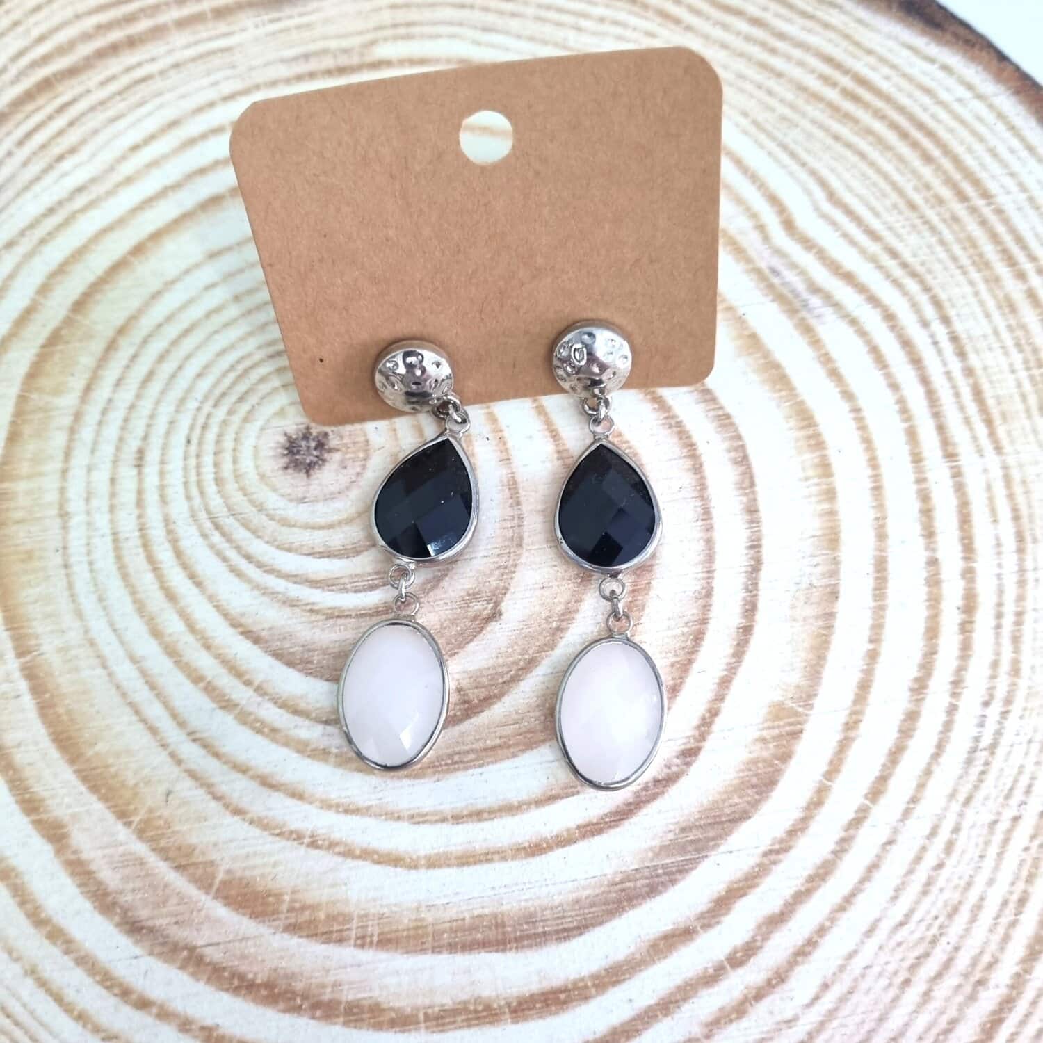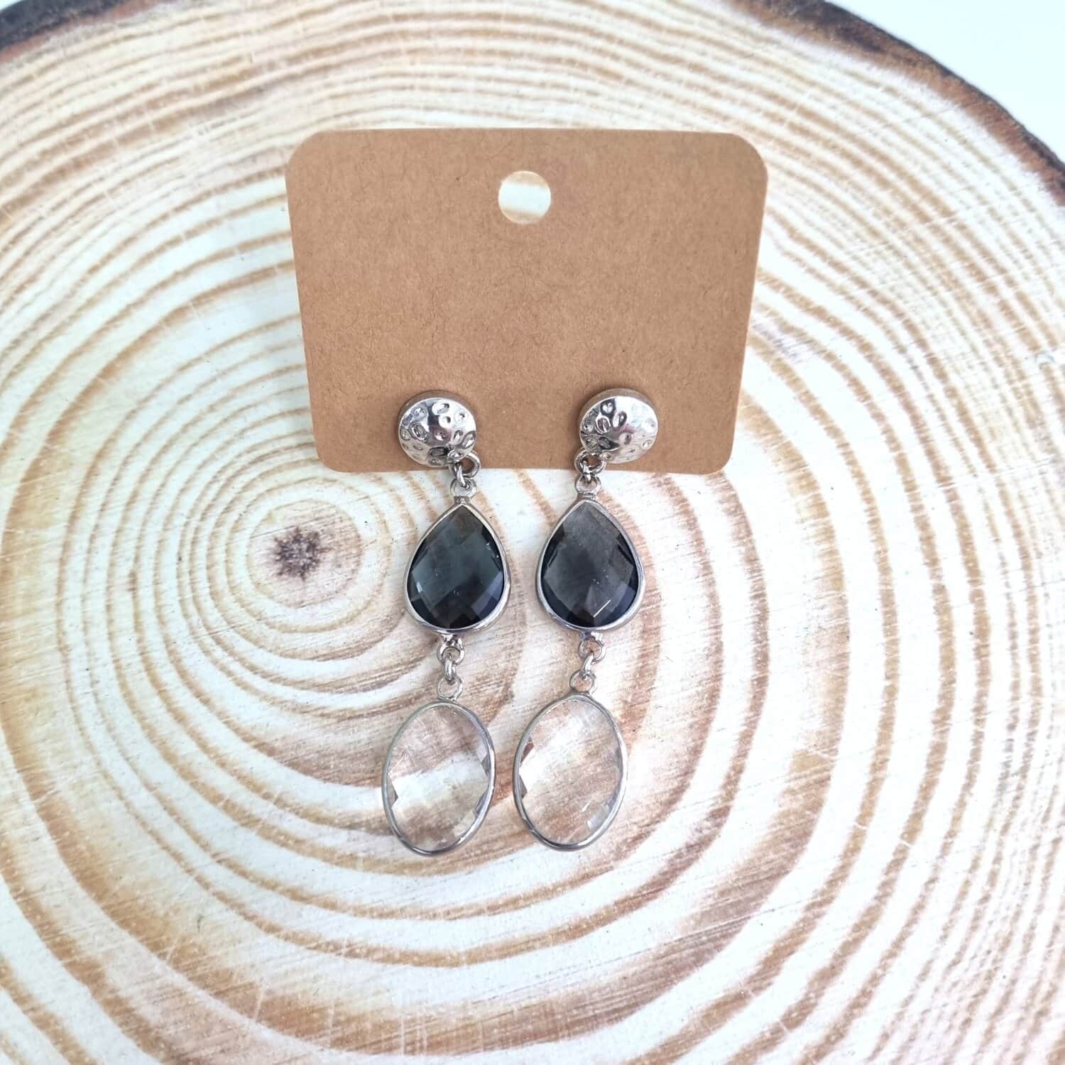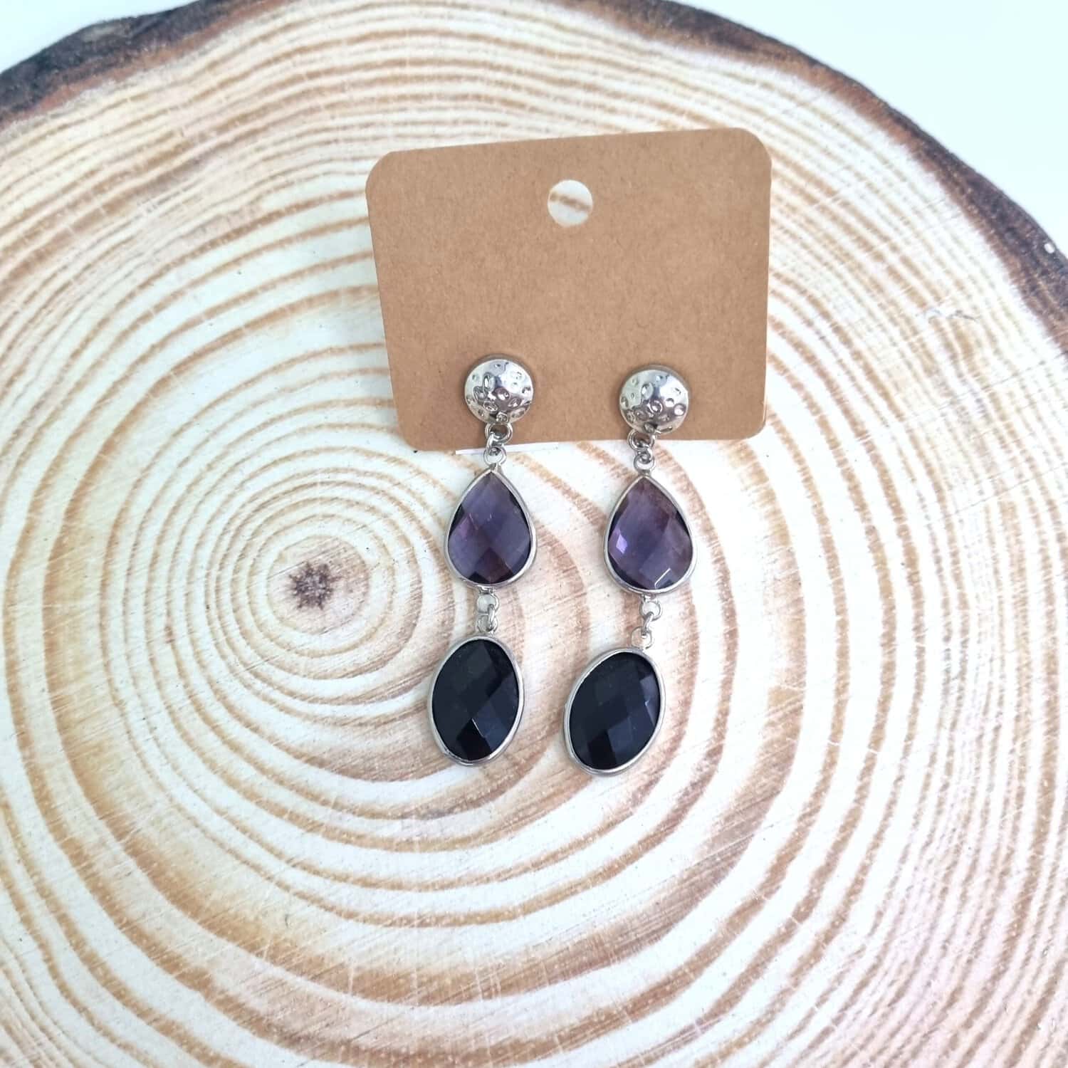 Κρεμαστά σκουλαρίκια από ορείχαλκο με κρύσταλλα σε δύο χρώματα.