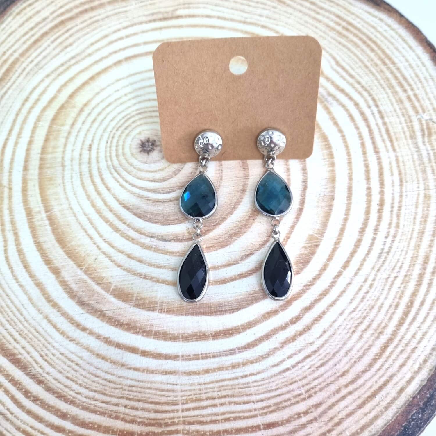 Κρεμαστά σκουλαρίκια από ορείχαλκο με κρύσταλλα δίχρωμα.