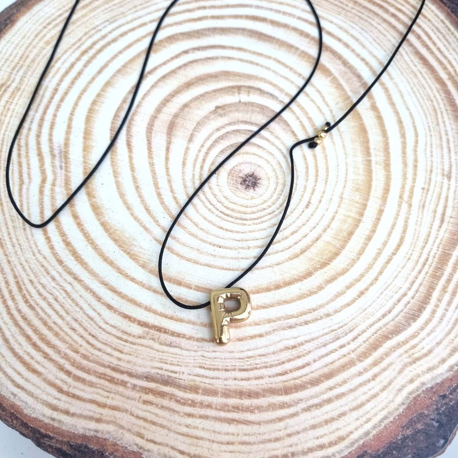 Μακρύ κολιέ με ατσάλινο μονόγραμμα Ρ