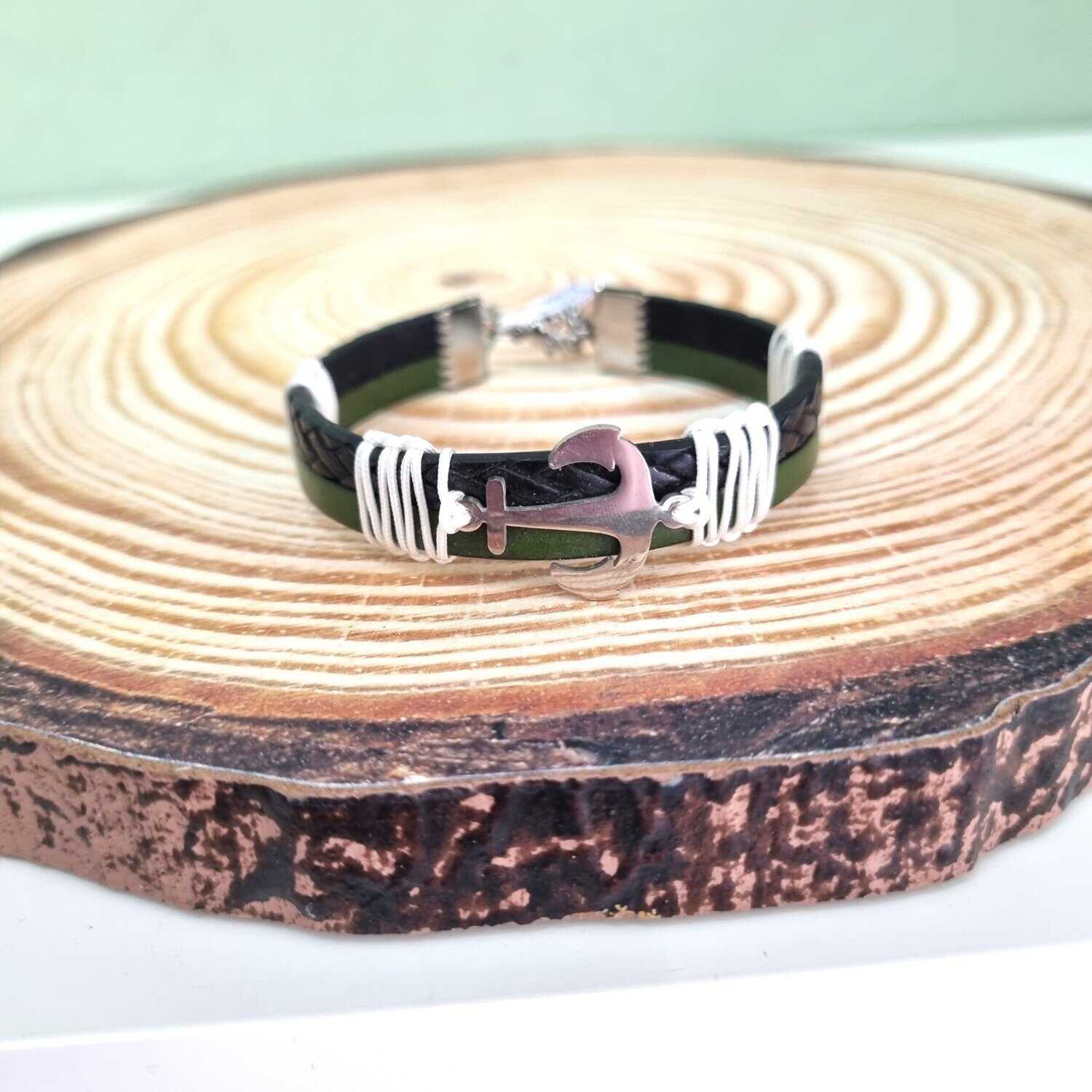 Βραχιόλι με ατσάλινη άγκυρα με διπλό λουράκι.