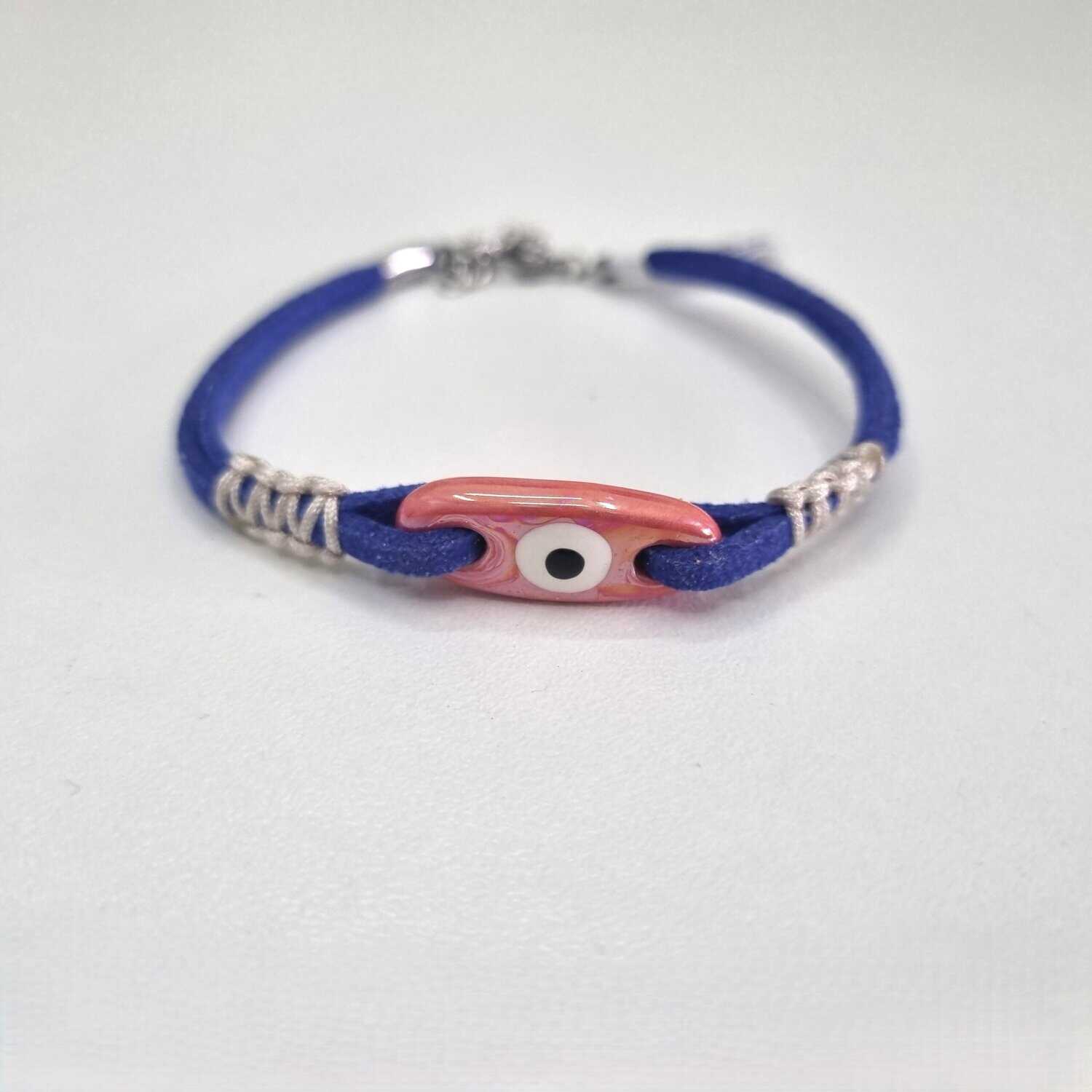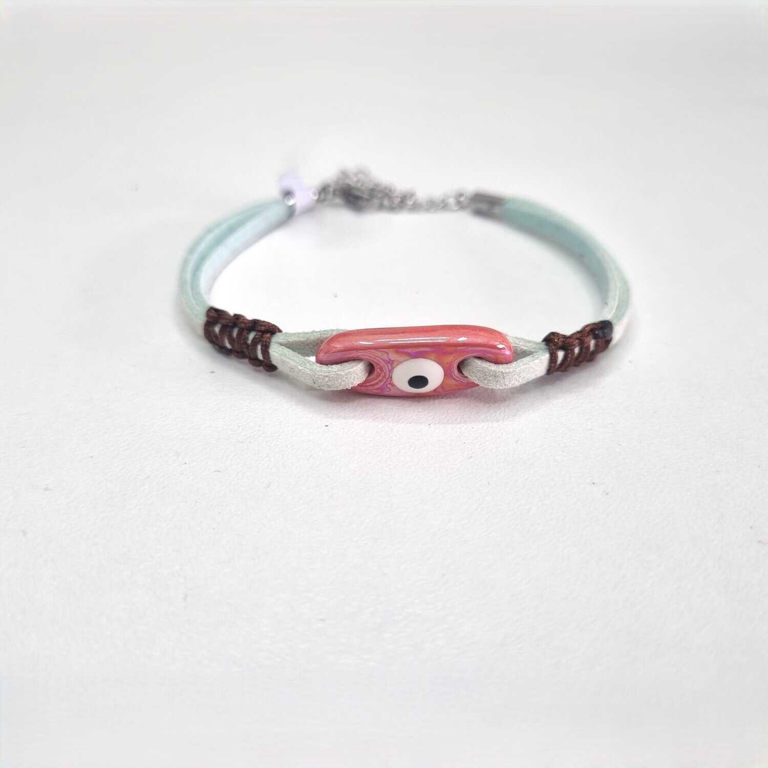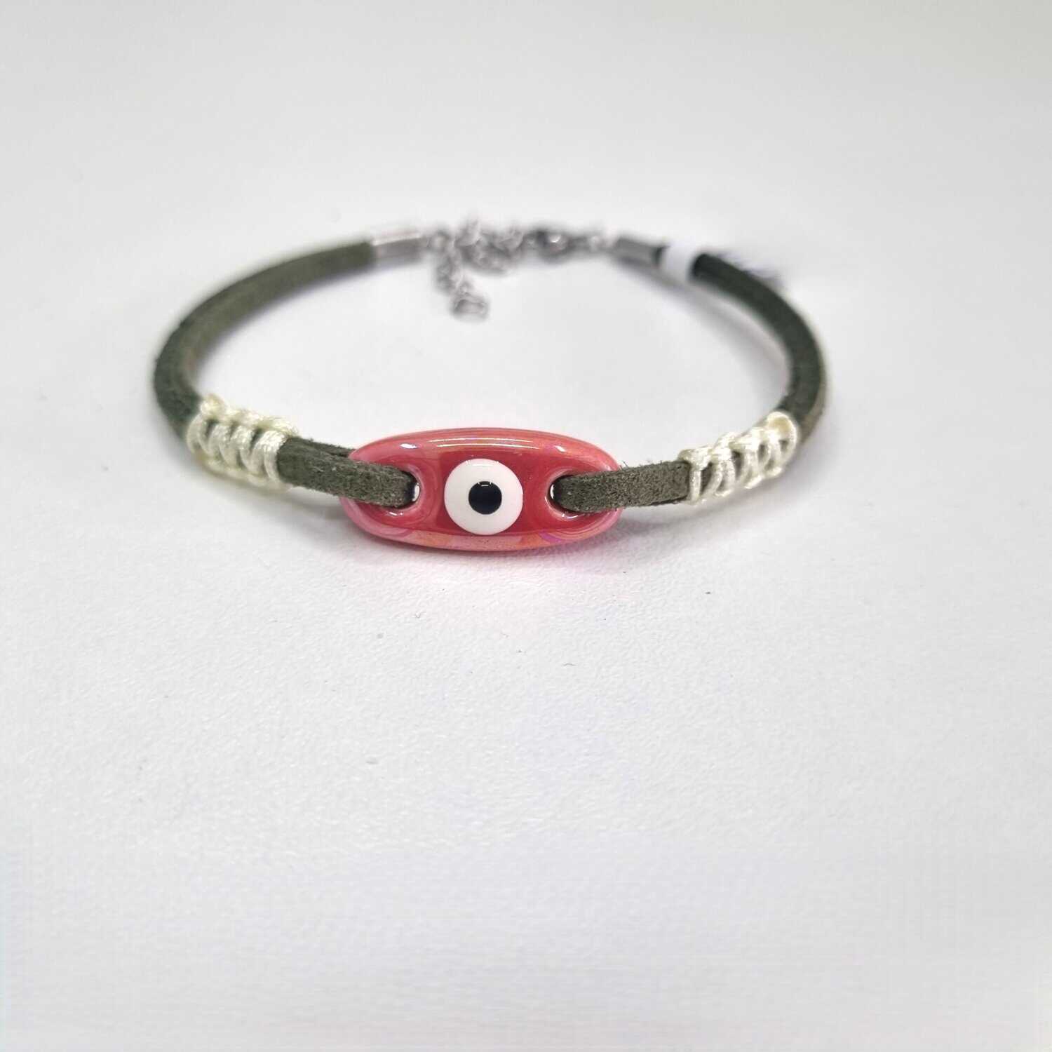 Βραχιόλι με κόκκινο κεραμικό μάτι με καστορ κορδόνι. Όλα τα μεταλλικά στοιχεία είναι από ατσάλι.